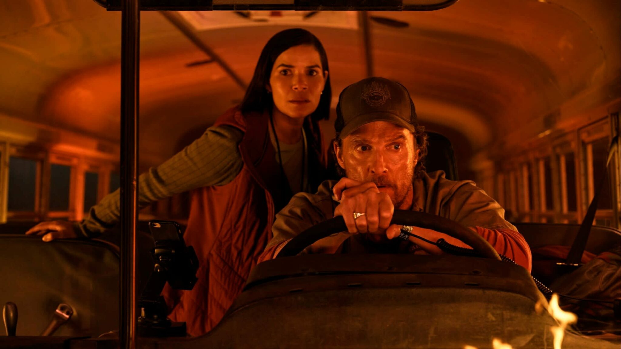 El emocionante thriller sigue a Kevin McCay, un conductor de autobús desobediente interpretado por McConaughey, quien responde a una llamada de auxilio para una clase de niños atrapados en la Escuela Primaria Ponderosa. Liderados por una maestra dedicada, Mary Ludwig (Ferrera), los 23 niños corren el riesgo de ser envueltos por el incendio Camp (Camp Fire) de 2018.