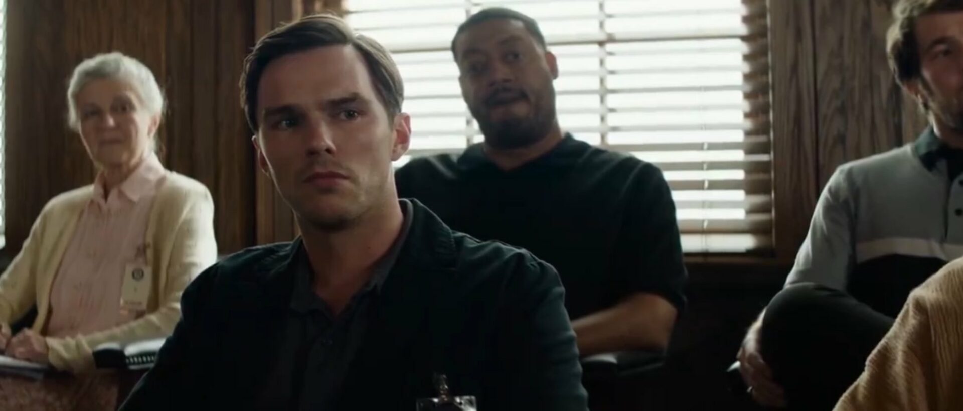 Hoult interpreta a Justin Kemp, el jurado descrito, mientras que Collette desempeña el papel de fiscal en el juicio.